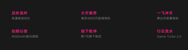 红米K20卖点 作为红米的第一款旗舰手机,红米K20卖点众多。核心配置上,拥有高性能的骁龙855移动平台,配备Game Turbo 2.0游戏加速技术。在拍照方面,后置三摄像头,主摄为索尼4800万像素镜头,手机正面采用弹出式前置相机。其他方面,红米K20内置4000mAh大电池,续航能力不俗,同时支持第七代屏下指纹。