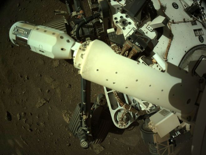 3月4日消息,美国国家航空航天局(NASA)的毅力号火星车在火星表面完成风力传感器的部署,而任务团队继续对火星车状态进行检测并开展设备部署。 自2月18日毅力号火星车在火星表面着陆以来,任务团队一直在稳步检查火星车的7套科学仪器和各种子系统。火星车上导航摄像机拍摄的照片显示,毅力号火星车刚刚完成风力传感器的部署。 风力传感器是毅力号所搭载火星环境动态分析仪(MEDA)的重要组成部分。这套仪器将监测毅力号火星车着陆点的空气温度、湿度、辐射、尘埃以及风力。毅力号火星车着陆点位于杰洛陨石坑的底部,这是一个宽45公里的区域,在火星远古时期曾有一个很深的湖泊和河流三角洲。 毅力号火星车是NASA耗资27亿美元打造的“火星2020”计划核心设备,其将在杰洛陨石坑寻找火星曾经存在的生命迹象,收集并保存样本,以便将来返回地球。但主要的科学工作要在晚些时候展开,毅力号火星车到访火星的第一个主要任务是找到一个可以让所携带直升机小伙伴起飞的机场。 这架名为机智号的直升机重1.8公斤,其将尝试在地球以外的世界完成首次直升机飞行。 任务团队表示,机智号直升机可能会在今年春天进行飞行,火星车的科学研究和取样工作将在今年夏天开始。(辰辰) |