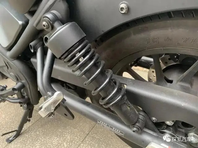 前避震正置前叉,个人认为在这台车上是完全没有问题的,并不是所有车型都适合倒置前叉,各位如果有倒置前叉漏油经历的,应该感受都很深刻。 CM300的减震效果好吗? 但凡是bobber车型,无论是日式、英式、美式,后避震由于结构所限,一定是不能跟传统车型比舒适度的。 前避震总体是偏硬的,但是相比之前印象深刻的灰石来说明显要软一些。 后避震相比于前减震更硬,过一个小的减速带速度稍微快那么一点,人都会被震得屁股离开座椅,它并没有完全到底,而是确实是因为行程太短。 但是,整车的减震感受是带有韧性的,绝不像传统bobber车型那样硬碰硬的感觉。