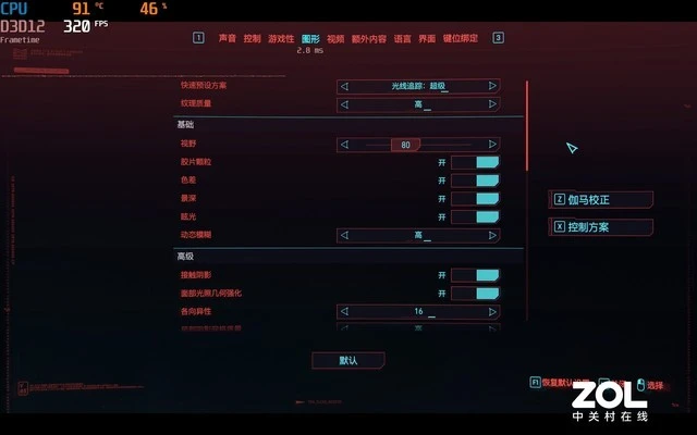 战场模式下,2560×1600分辨率画面流畅度为50.4fps,1920×1200分辨率下流畅度为79.7fps,刀锋500 SE玩这款游戏没有任何压力。 最后一款测试游戏是《赛博朋克2077》,测试之前将光追模式开启为超级,画质最高,DLSS设置为自动。