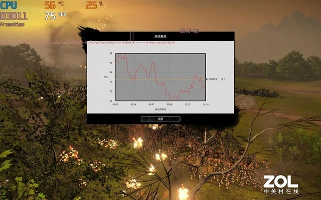 在2560×1600分辨率下画面流畅度为126fps,1920×1200分辨率下流畅度为180fps,运行毫无压力。 《全面战争:三国》同样是一款比较依赖处理器性能的游戏,因为游戏过程中会涉及到庞大的物理逻辑运算。尤其是在将部队规模开启到最大之后,处理器的压力明显增高。