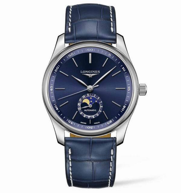 浪琴表名匠系列月相腕表 浪琴表名匠系列月相女表,搭载自动上链机械机芯,内置硅游丝。白色珍珠母贝表盘上缀以钻石时标,搭配红色皮质表带。浪琴表名匠系列月相男表,采用蓝色太阳纹表盘与镀银指针,搭配蓝色皮质表带,传递爱的温暖甜蜜。