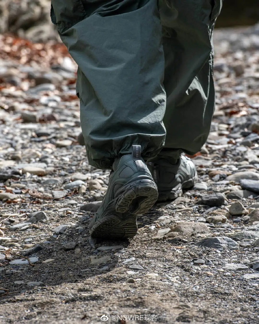 从鞋面到鞋底统一采用了让人联想到军事用品的鼠尾草绿