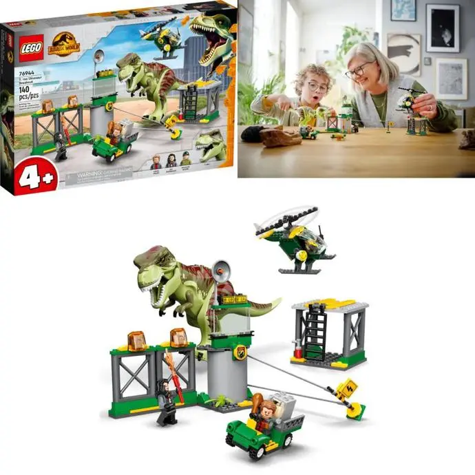 套装参数: 零件数: 91 人仔:2个 尺寸: 9cm高 x 12cm宽 x 13cm深 发售日期:2022年4月17日 海外售价: 32.99 AUD / 24.99 CAD / 19.99EUR / 17.99 GBP / 19.99 USA 中国售价:199元 76944 d T. Rex Dinosaur Breakout