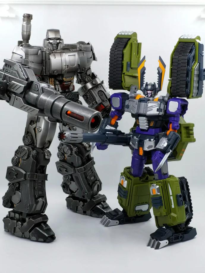 前文一直在说玩具的体型庞大,那么到底都有多大呢,和ft感知器放在一起比较不难看出,竖向发展的后者在高度方面与横向发展的MT威震天相差无几,不难看出老威的体型了。