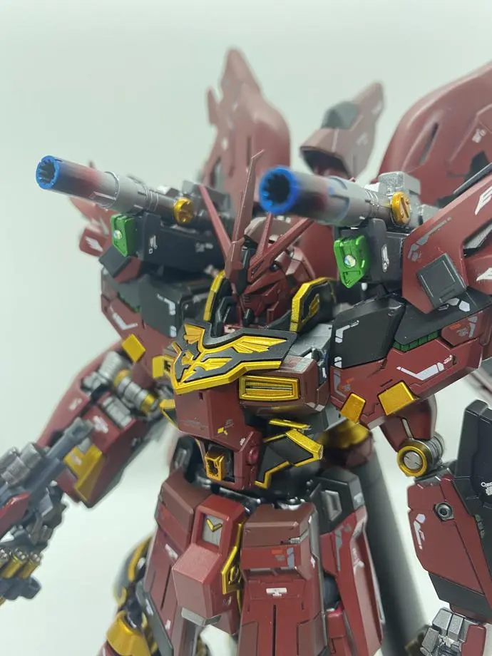 这款模型的主体是RG比例的海牛高达模型,模友将新安洲的配色移植到了海牛高达模型上,整体模型配色以红色为主,细节用金色点缀,外甲部分增加了很多新安洲的标志,看过新安洲的模友一眼就能认出这款海牛高达模型重涂的是新安洲配色。