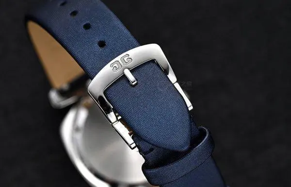 腕表配备了午夜蓝小牛皮表带和石英机芯。