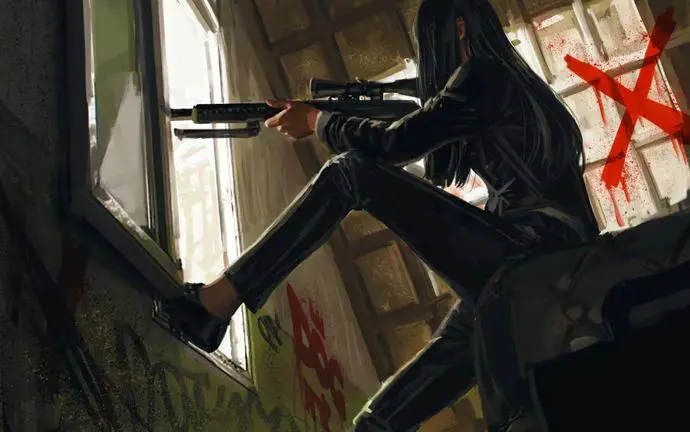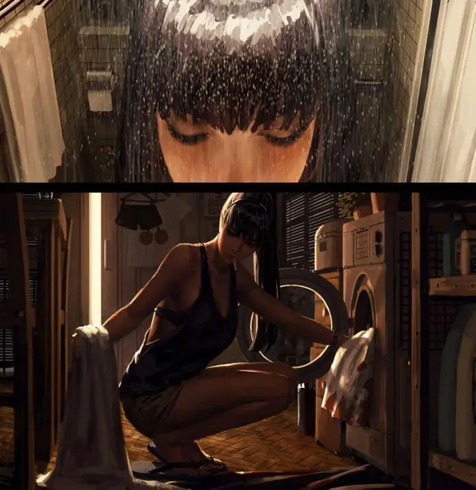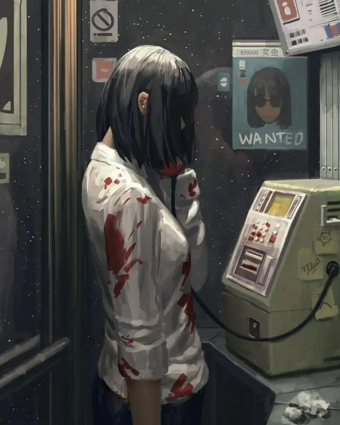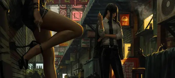 他的画以“雨夜深巷女杀手”为标志性,
