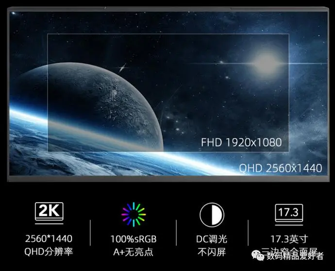 机械师星辰17采用了硕大的17.3英寸超大屏幕,可惜比例并非16:10,不过2.5K分辨率、100% sRGB,165Hz(顶配版为240Hz)刷新率等规格却丝毫不差,和一线品牌的顶配旗舰相比就是缺少了专业的校色和认证。