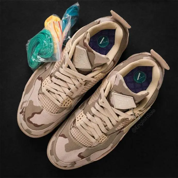 但回顾 Aleali May 与 Jordan Brand 合作初期,也有将个人 PE 转化为市售的先例。 不知这款沙漠迷彩 Air Jordan 4 PE 能否后续推向市场,进一步消息我们会密切关注,感兴趣的小伙伴不妨多加留意啦! Aleali May x Air Jordan 4 PE(F&F)