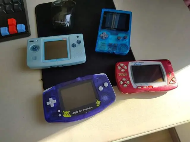 这些年,还陆陆续续收了几台NGPC和WSC,上图那台红色WSC是改了前光的,效果不咋的。近几年一直想把韩国掌机GP32收来,但价格要小两千,一直没舍得出手,而且那玩意的游戏卡也不便宜,收来只能看不能玩没意思。