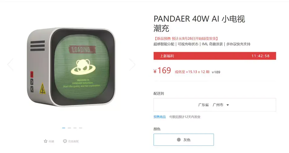 9月16日,此前魅族官宣的PANDAER 40W AI小电视潮充正式上架了,预售价169元。魅族刚好踩着苹果iPhone 14系列首销来卖配件,显然是为了吸引一波新iPhone用户了。
