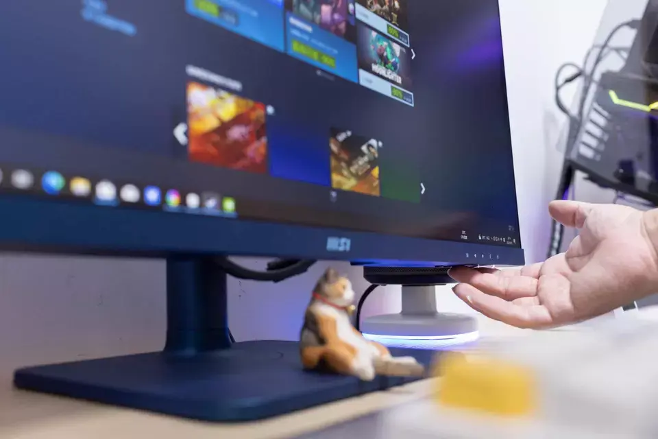 微星MD272QP Ultramarine的对比度高达1000:1,雾面屏即使在光线复杂的环境下,纯黑画面表现相当完美。在开机时,可以看到MSI的LOGO。