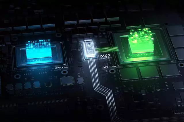 这款游戏本支持了MUX Switch。可能有些小伙伴不太容易分清楚它和此前介绍的独显直连,其实也比较容易区分,独显直连是混合模式和独显模式两种切换,而MUX Switch还增加了一个核显模式,进一步降低笔记本的功耗。目前游戏本市场两种方案并存,对比来看还是MUX Switch更好一点。