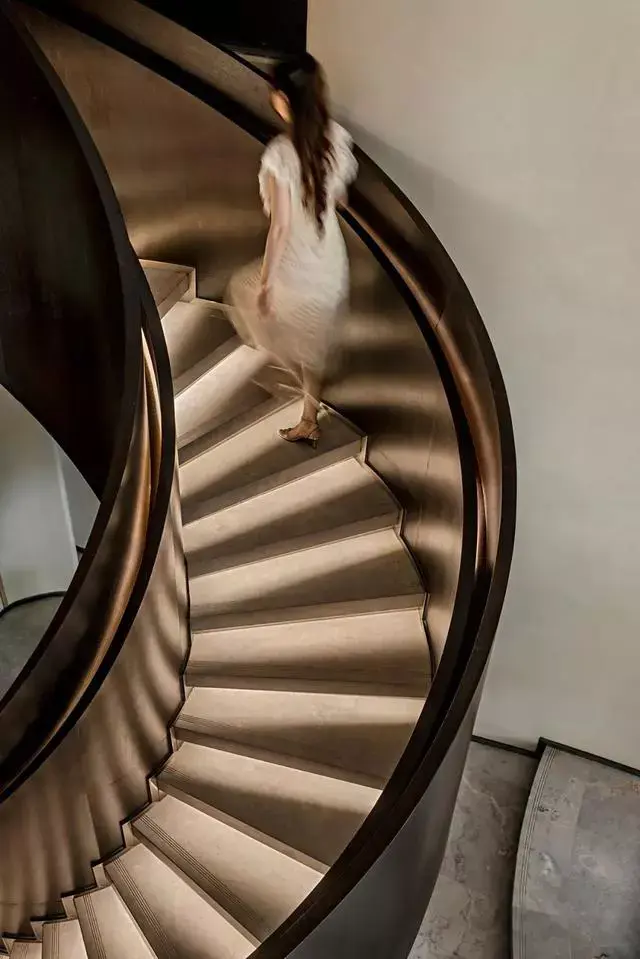 沿着充满雕塑感的旋转楼梯而上,开启一段新的旅程,视域逐渐打开,惊喜在行进中被创造。