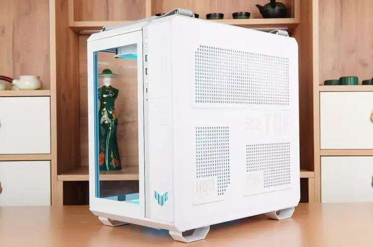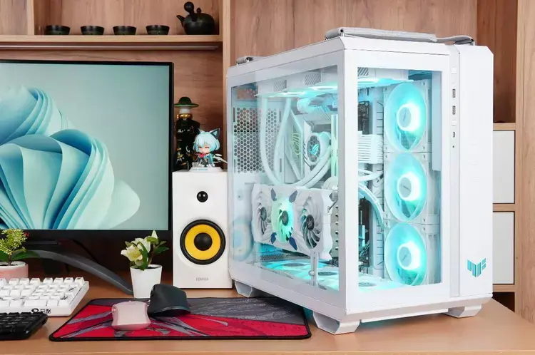 最后的装机效果我个人还是相当满意的,白色版的华硕TUF Gaming GT502弹药库机箱搭配同为白色的PC组件很容易就能形成一台高颜值的主机,并且主仓可以同时透露出多把RGB风扇的灯效,光污染几乎是拉满了,最终通过华硕TUF Gaming GT502弹药库海景房的设计展示出来,令人非常愉悦。下面就来看看这套配置的散热效果到底如何。