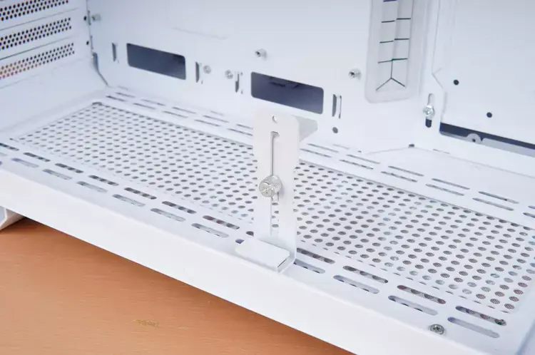 机箱底部还设有一个风扇支架,同样最大可以支持360冷排的安装,底部安装风扇可以有效增强显卡的散热表现。