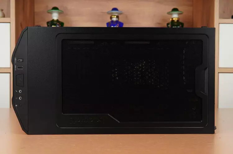 机箱前面板两条贯穿天地的ARGB LED灯带也是PURE BASE 500 FX/DX的一大特征之一了,辨识度极高,大老远就能够认出型号来,两侧设有大面积的通风网孔,散热效果同样也非常不错。