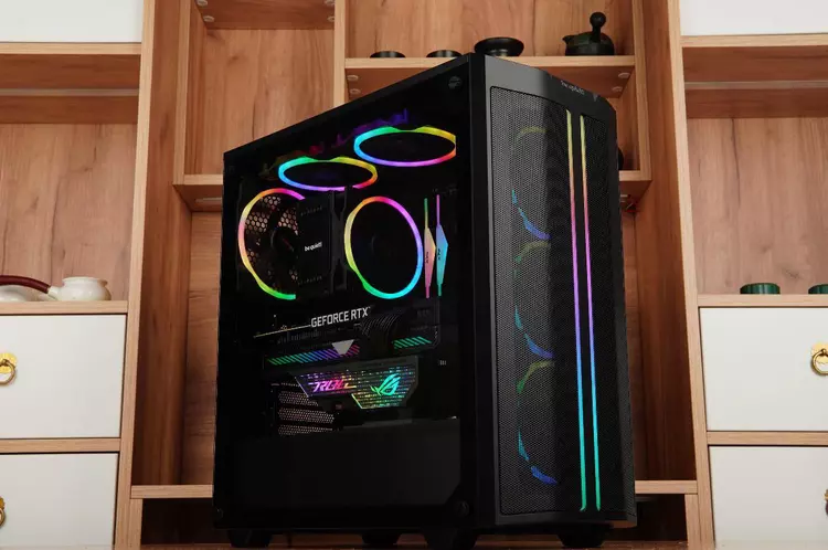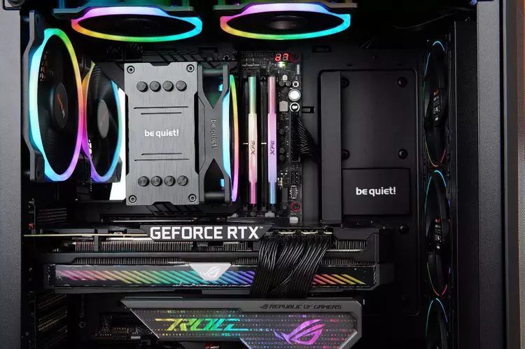 机箱内部的灯光形状统一性非常高,数量多的同时也不会给人带来过于泛滥的感觉,个人觉得处于一个不错的效果平衡点上。下面就来看看这套主机的散热效果如何。