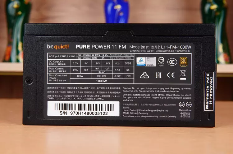 PURE POWER 11FM 1000W内部结构是全桥LLC谐振+主动式FPC+同步整流+DC-DC,采用了双路+12V输出设计,总输出电流可以达到83.3W也就是接近999.6W的功率,用来应付上述的配置是完全足够的。下面就来看看装机效果吧。