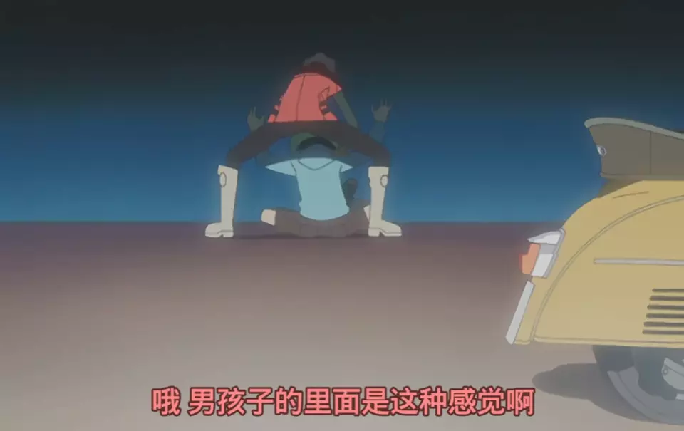 这种性启蒙的暗示在《FLCL》中随处可见,其中最让本花感到有趣的是父子争夺晴子的剧情。