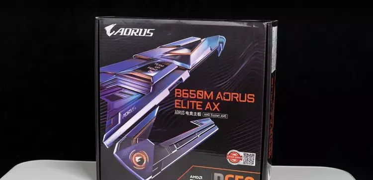 技嘉这款B650M AORUS ELITE 小雕AX,包装依旧采用金属混合电竞风格的大雕头作为门面,除了型号标注以外,下方小字介绍了主板支持DDR5内存、NVMe SSD以及2.5G网卡,支持四年全国个人送保,这点要比市面上绝大数品牌都要强。