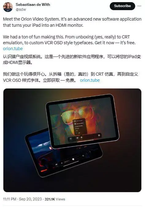 据国外推主Sebastiaan de With分享,他找到了一款叫Orion的APP(免费下载),可以让iPad外接PS5、NS乃至PC。