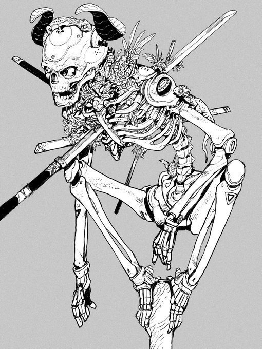 黑白机甲画风手稿 动漫插画参考 acky bright ...