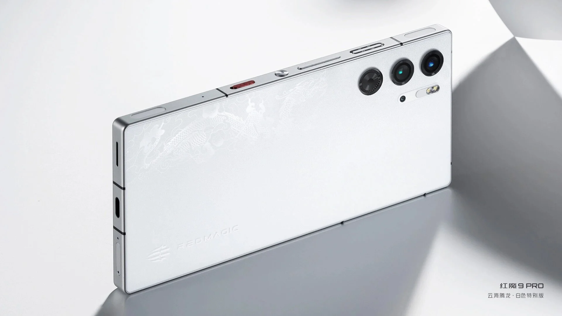 红魔9Pro云海腾龙·白色特别版|||灵感源于中国古代官窑:云海腾龙纹瓷器>>>历经数十道3D微蚀刻工艺,在红魔9Pro白色特别版机身上,呈现出一条威武腾龙出云入海的壮阔画面,将中国古典与现代科技美学巧妙融合!