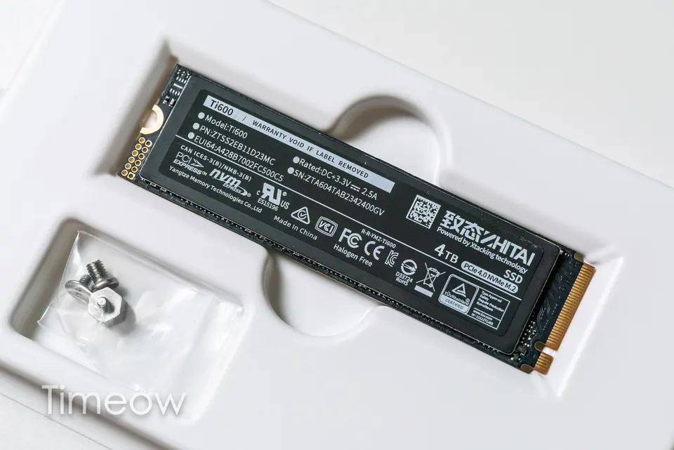 Ti600这款是致态新出的平价SSD,参数和TiPlus7100接近,但价格低了不少。它使用的是长江存储的晶栈Xtacking 3.0 3D NAND QLC颗粒,没错,是QLC颗粒。但它依旧有同样的I/O性能,同样提供了5年质保,保固写入量为1600TBW。