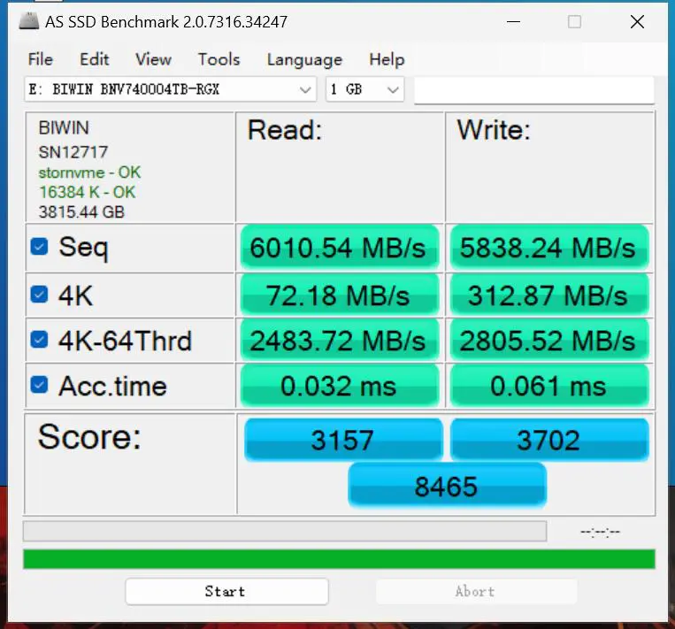 这款产品是佰维存储旗下的自有品牌推出的新品,和宏碁掠夺者一样,是同一家公司的产品。在品质上,NV7400用的是佰维自封长存颗粒,有着不错的品质和稳定性。 跑分