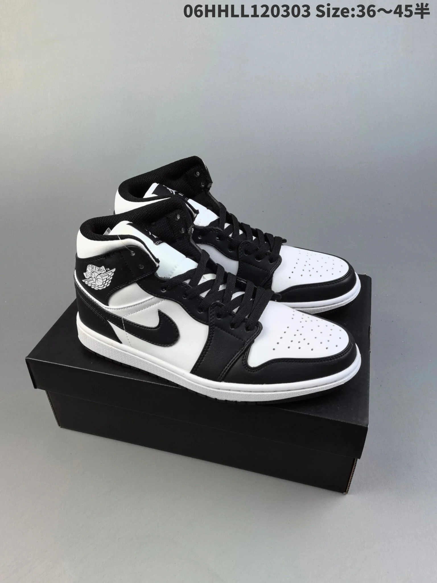 这鞋太帅了|||#Air Jordan 1 Mid "Panda" 中帮 黑白色 AJ1 乔丹1代 aj1 乔1 中邦 黑白熊猫 乔丹篮球鞋系列 鞋身以白色皮革为主,搭配黑色框架覆盖层,鞋身两侧Swoosh Logo采用黑色点缀,鞋舌黑色绣标上搭配白色Jumpman Logo,鞋领处Wings Logo也以白色压印呈现,最后以白色中底搭配黑色外底完善设计收尾。#最百搭的鞋[话题]# #潮鞋[话题]# #美鞋分享[话题]# #潮牌鞋子[话题]# #AJ[话题]# #高仿[话题]#