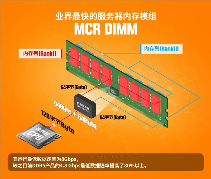该内存模块每面均有 40 个内存芯片,一条 256 GB MCRDIMM DDR5-8800 内存模块的功耗约为 20W,作为对比美光此前发布的 DDR5-4800 规格 128 GB DDR5-8000 RDIMM 模块的功耗为 10W,因此功耗相对来说较低。 IT之家注:MCRDIMM 全名为 Multiplexer Combined Ranks DIMMs(多路合并阵列双列直插内存模组),将多个 DRAM 组合在一块主板上,能够同时运行两个内存列(Rank,模组处理信息的基本运行单位),提高内存的速率。