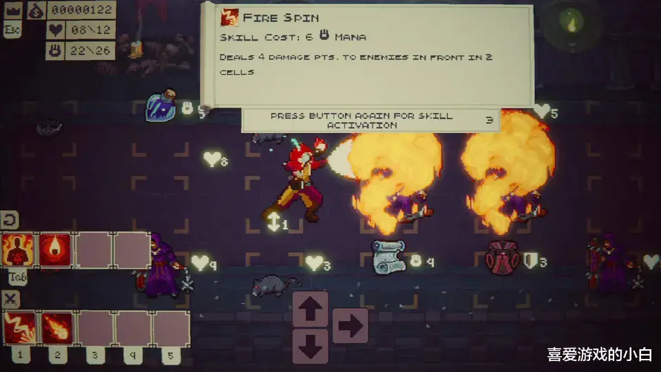 游戏的玩法非常简单,我们控制的角色在地牢中冒险,采用同步回合制,每回合玩家可以移动一次,并且只能向前或者上下移动,不允许后退,一路上玩家将遇到随机分布的敌人、能力值、武器装备等等,你需要进行一定的抉择,如何选择路径,进行一定的取舍,在培养角色的同时保证在BOSS战前的状态。