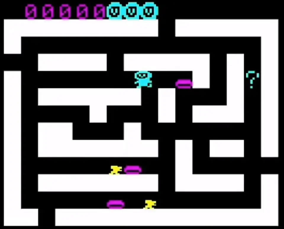 最早的一款哆啦A梦漫改游戏是1983年由万代发布在Arcadia2001主机上的,名字很直白地就叫做《哆啦A梦》,玩法类似于FC上的吃豆人,不过画面看起来要更简陋一些,玩家可以控制蓝色的机器猫去吃掉地图中的铜锣烧,同时还要避免被老鼠抓住。有一说一,除了游戏名字,这谁能看出来是哆啦A梦啊。