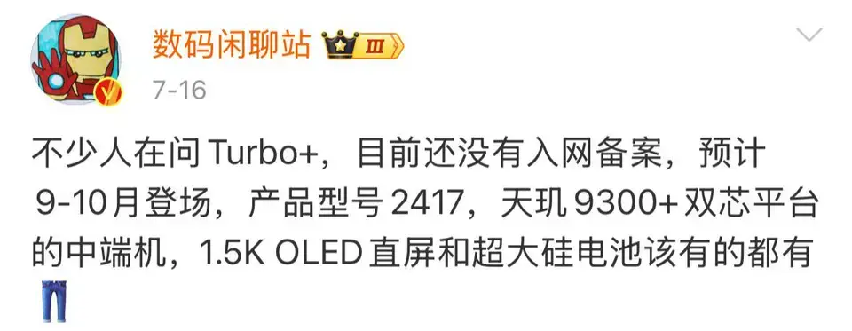 也就是说,今年的 iQOO 13就只有标准版一款机型了,这也是继一加之后,第二家正式取消数字系列 Pro 版的子品牌。取消 Pro 的好处是,能让标准版部分配置得到大幅加强,没有 Pro 胜利 Pro。 从现有爆料来看,iQOO 13 将采用 2K 显示屏,这可能也会是下半年同档唯一的 2K 直屏。尺寸是常规大屏,并且边框控制还不错。不过,这块 2K 屏的供应商并非三星,而是来自国内厂商京东方。