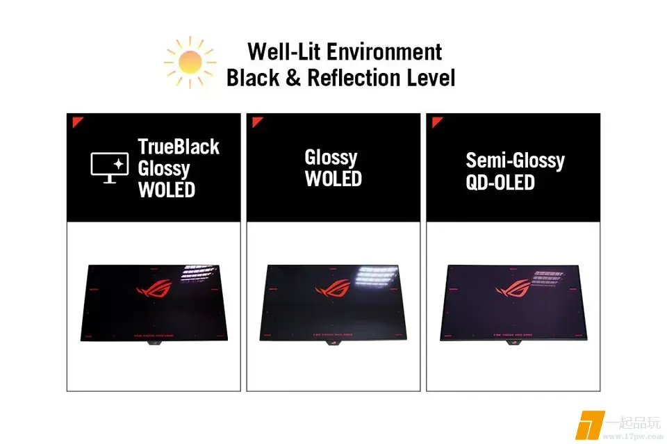 TrueBlack Glossy Films 亮面(镜面)涂层可助力 WOLED 面板实现更为深邃的黑色效果,环境光线反射较上代镜面 OLED 减少了 38%,同时在不牺牲清晰度的情况下提供与雾面屏相似的眩光抑制。