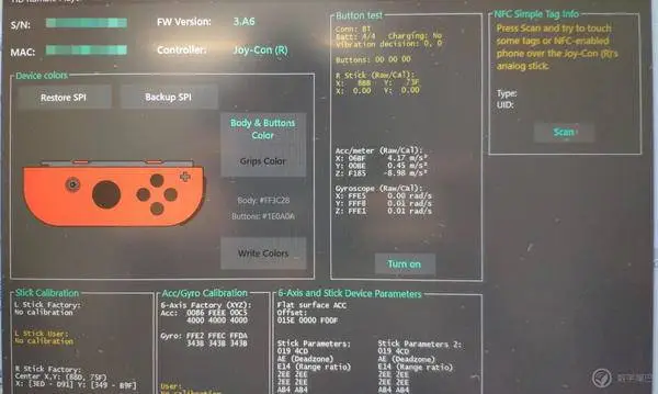 去年发售的 Nintendo Labo 套件应该是 IR 摄像头的高光时刻,不过略高价格让很多钱包不鼓的 NS 玩家望而却步(比如我 。但现在日亚的 Labo 价格跳水,有兴趣的玩家可以再考虑下)。有什么不花钱也能体验 Joy-Con 更多功能的方式吗?有! 电脑安装 joycon toolkit,可以打开 Joy-Con 的新世界。安装好驱动、通过蓝牙连 Switch 主机后,可以获得关于 Joy-Con 的详细参数。 Joy-Con 连接 Switch 主机时,主机的图标会显示 Joy-Con 的颜色,而这个颜色就可以通过 joycon toolkit 来更改(还没想好有什么用处……)。