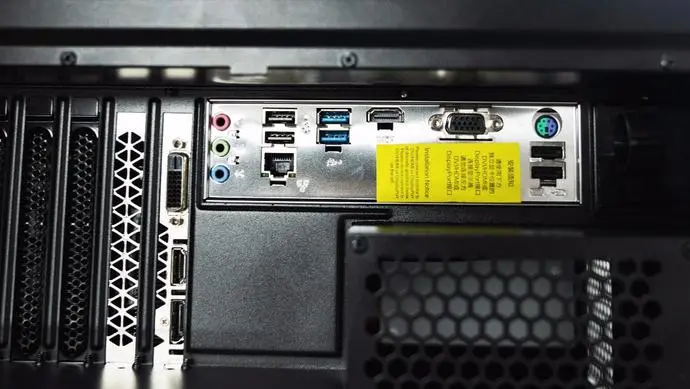 打开七彩虹黑鳍鲨游戏主机的顶盖之后就可以看到,这款主机提供了一组音频接口、4个USB3.0接口、2个USB2.0接口、1个RJ45网线接口、1个PS2接口。显卡上配有1个DP接口、1个HDMI接口和1个DVI接口,这些接口基本上是能满足绝大多是游戏玩家的需求了。