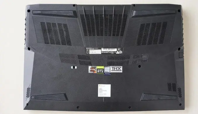 机械革命蛟龙P的D面有大量的散热孔。通过这些散热孔,冷空气可以顺利的进入到机身内部,有助于提高整体的散热能力。透过这些孔洞,依稀可以看到内部的元器件和两个硕大的散热风扇。