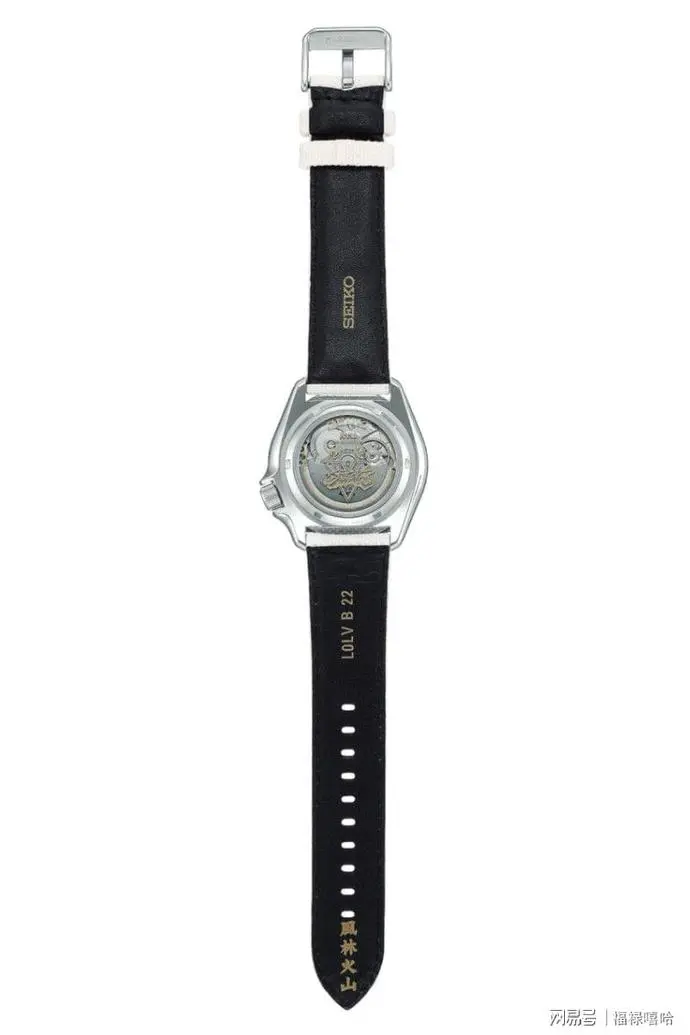 表盘设计及配色,以隆的柔道服为灵感,表圈斑驳的划痕纹路,则展现其求道路上的艰辛;9点位置有隆拳套上标志性的“风林山火”字样。表背上还印有“波动拳”的出招指令;表带正面材质选用了帆布也是与柔道服相呼应。