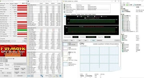 我进行了双烤测试 CPU测试项与CPU单烤设置一致 GPU部分则采用FurMark 设置为1920×1080 8X MSAA。30分钟后CPU