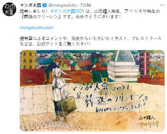 《葬送的芙莉莲》获得日本 漫画大赏2021 大赏。