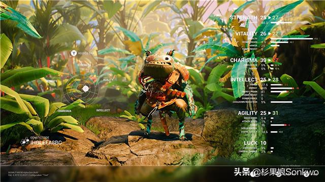如下图所示,主角拥有六种属性:活力、力量、智力、魅力、敏捷和运气。调整这些属性会为角色带来视觉上的变化,例如力量高的角色会出现胸部突变,敏捷高的角色看起来比较瘦。