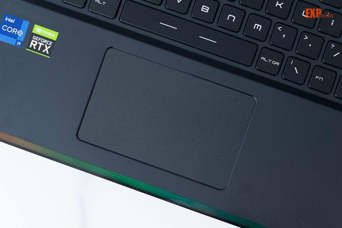 对于17.3英寸的大尺寸机型来说,微星强袭GE76-11UH的触控板尺寸显得会有点小,不过游戏本的用户,特别是这种大尺寸机型的用户其实不会将笔记本经常挪动,大部分时间都是外接鼠标进行操作了,特别是游戏的时候,所以并没有什么问题。此外,针对游戏玩家,笔记本还做了一条RGB灯条在边缘,非常炫酷。