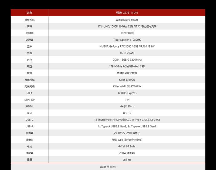 这次我们评测的微星强袭GE76-11UH游戏本正好就是顶配的一款,详细规格如下: