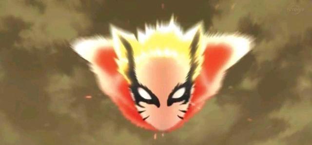 除了头部之外,身后出现了九条红色的巨大的查克拉尾巴,身体上也披着一件查克拉的外衣。这里动漫和漫画有所不同,鸣人的这个重粒子模式在漫画封面是黄色的,而这次在动漫中,改成了红色的。感觉这样改版也很帅气,就是鸣人的这个重粒子模式出现,也就标志着九尾很快就要离开了,想想就觉得悲伤!
